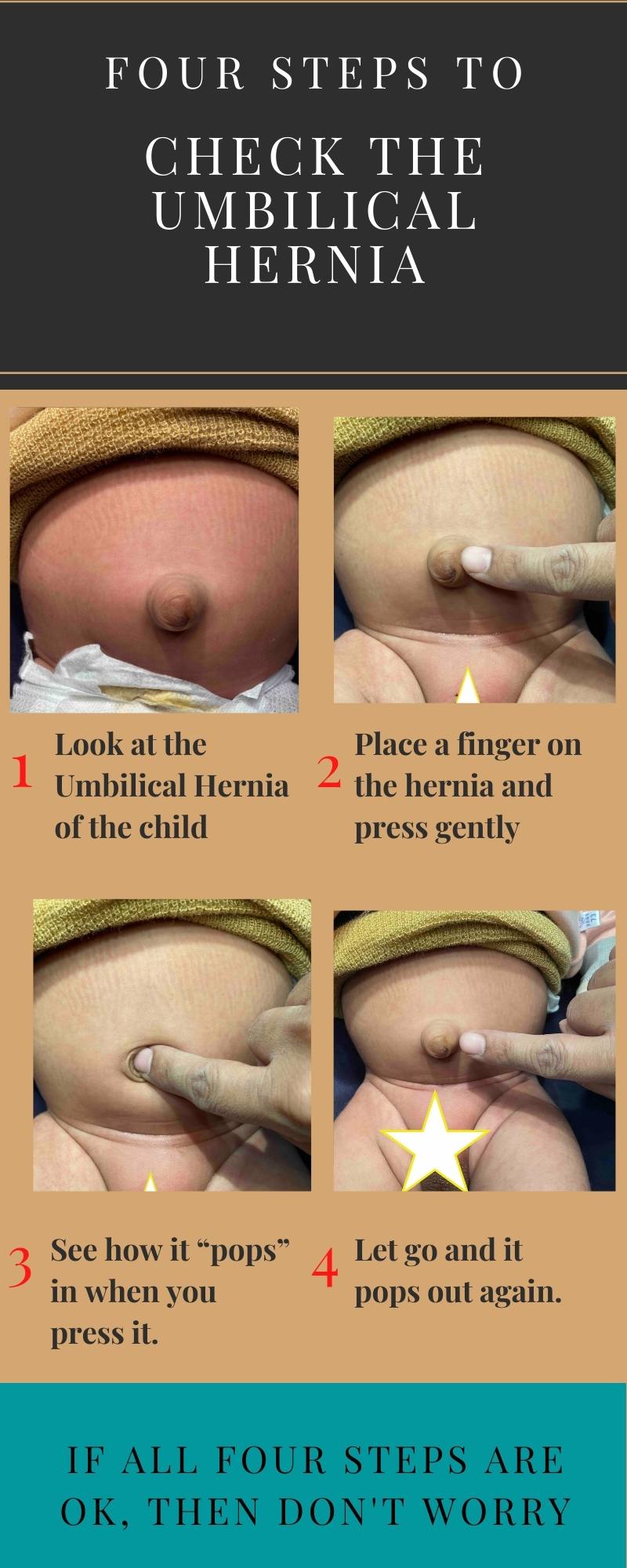 Generally, for umbilical hernia treatment, we wait and observe. But there are some danger signs. When you observe them, then you must see the doctor immediately:- The child is continuously crying, and the size of the hernia is not reducing.