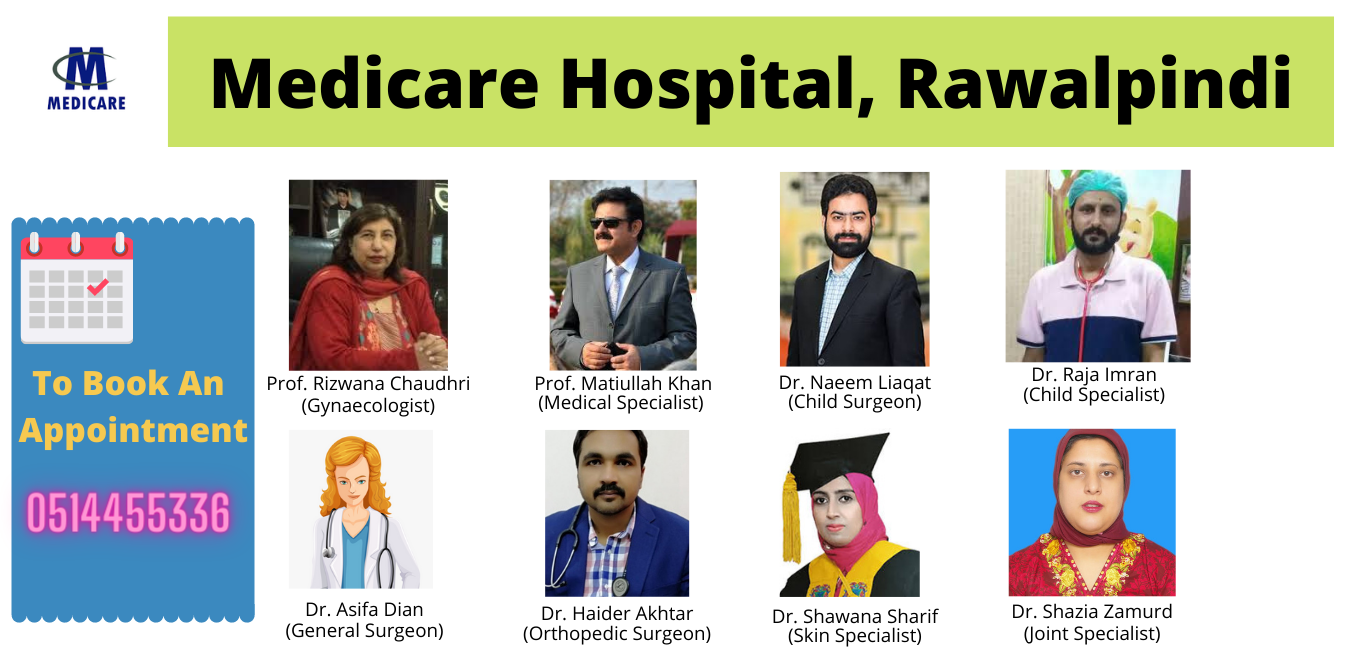 It is located at Saidpur Road, Satellite Town, Rawalpindi. The Medicare Hospital Contact number is 0514455336.